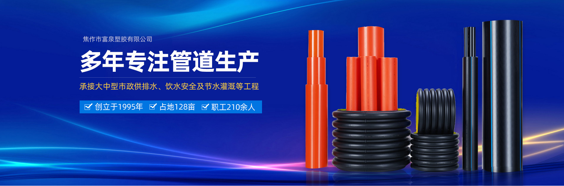 - 焦作市富泉塑膠有限公司,創立于1995年,是一家集研發(fā)、設計、生產、銷售為一體的大型管材企業。公司位于太極故里、黃河之濱一一河南焦作溫縣。公司占地128畝,現有職工210余人,其中具有中技術職稱的19人。生產、檢驗設備58臺(套),包括PVC實壁管生產線11套、PE實壁管生產線12套、HDPE雙壁波紋管生產線6套、PVC雙壁波紋管生產線5套,檢驗設備14臺(套)。主要產品有:Φ20mm-630mm、各種壓力規(guī)格的PVCU、PVC-M、PE給水管材,PVC-U節(jié)水灌溉管材,HDPE燃氣和礦用管材,DN200-800mm的HDPE、PVC雙壁波紋管及各種噴灌、滴灌工程材料。承接大中型市政供排水、飲水安全及節(jié)水灌溉等工程。 富泉塑膠公司重視產品的質量、安全、環(huán)保和節(jié)能,在同行業中率先完成了“新華節(jié)水產品認證”,全方面通過ISO9001:2008國際質量管理體系、IS014001:2004環(huán)境管理體系和OHSAS18001職業健康安全管理體系的一體化導入,并建立起規(guī)范的現代企業管理體系。公司以“質量”為先導,采用質量跟蹤、多環(huán)節(jié)把關的方法,組建具有行業水準的企業技術檢測中心,常年委托水利部節(jié)水灌溉設備檢測中心、河南省產品質量監(jiān)督檢驗院對產品跟蹤檢測,并由中國人民保險公司承保產品質量。公司連續(xù)多年被河南省水利廳確定為“安全飲水設備、節(jié)水灌溉設備”定點生產企業,并獲得“中國名優(yōu)產品”“質量、服務、信譽AAA企業”“河南省**產品”“河南省水利企業”“河南省守合同、重信用企業”等榮譽稱號?! 「蝗苣z公司堅持“用戶為上”的服務理念,長期以來,全方面關注客戶價值,不斷提升服務水平。服務隊伍常年為客戶的產品設計、施工、安裝提供合理的方案和全程細致、周到、**、快捷的技術服務。公司自成立以來,一直堅持以人為本的宗旨,塑造企業形象,并致力于新產品的開發(fā),憑借雄厚的技術開發(fā)能力,先進的工藝制造流程,嚴格的質量管理保證體系,優(yōu)良的售后服務網絡,已成為河南省大的飲水、灌溉及排水管材設備制造商。產品暢銷全國,而且還以公司雄厚的綜合實力在業界中占據著重要的地位。